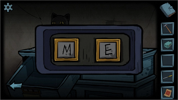 刚擦净的血迹下方藏着一张密码纸,这正是刚发现的箱子的密码。纸上写着“blood”,只需按行找到对应字母的数值:b对应3、l对应2、o对应4、o对应1、d对应5,再按顺序按下盒子的按钮,就能得到一个头颅。取出头颅里的黑色猫眼,将其安装到猫的身上即可。
