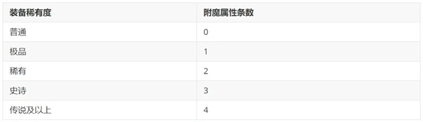 其次是附魔属性,它的条数与装备品质相关联,玩家能够在锻造台对装备进行附魔操作。附魔属性共分为5种品质,按照从低到高的顺序依次为:普通(白色)<极品(绿色)<稀有(蓝色)<史诗(紫色)<传说(橙色)。需要注意的是,不同部位的装备可通过附魔获取的属性存在差异,若想了解具体信息,大家可以在游戏内的附魔界面点击右上角的蓝色按钮进行查看。