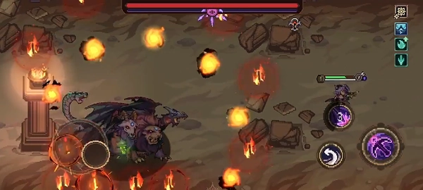 接下来是火连弹技能,狮子头会朝自身周围360度方向发射大量火连弹,能造成高额伤害,不过该技能的伤害可以被柱子阻挡。