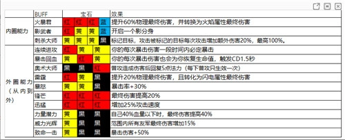 外圈:疾风法师、法术回旋(大电球)、大法师、雷霆审判、暴怒、锋芒、力量潜力、暴击潜力、连续进攻、雷法、火法、雪花、威力光辉、加速光辉