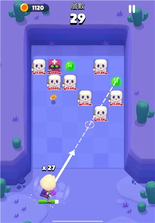 一路上,魔法球会经过一连串弹射,攻击所有与之碰撞的敌人,最后在落下时收回法杖里。而它首次落下的位置,将作为你下一次射击的起始点。
