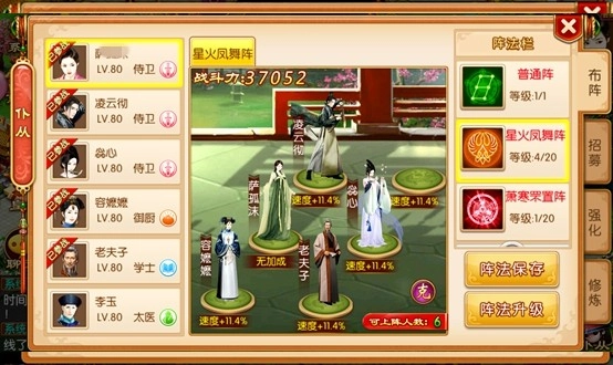 选择BUFF加成阵法,提高团队战斗力。