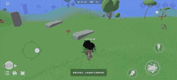 当你靠近可采集的素材时,界面右侧会弹出对应的材料名称按钮,点击该按钮就能完成采集操作啦~