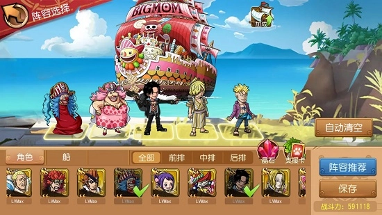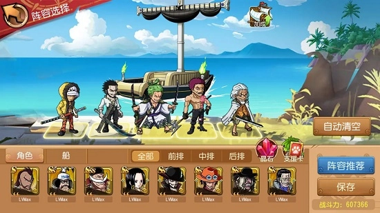 主流最优阵容推荐突破罗(能量型)、大剑豪·米霍克(物穿型)、佐罗十郎(物穿型)、突破卡塔库栗(物穿型)以及突破雷利(物穿型),搭配船技“棺船”。