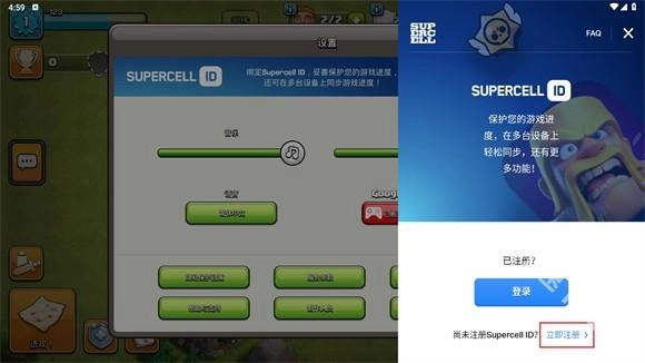 进入游戏完成新手教程后,点击右下角的齿轮图标,接着点击supercell ID区域显示的“已断开”选项。