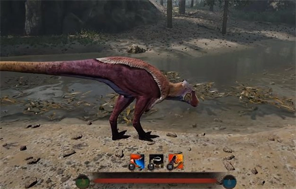 游戏里的饱腹度与饥渴值会在血条两侧呈现,左侧为饱腹度,右侧是饥渴值,一旦这两项数值过低,恐龙的属性就会下降,要是长时间没有进食,恐龙的血量还会随之减少。