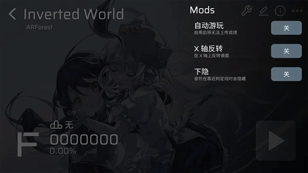 点击右上角的扳手图标后,屏幕右侧会呈现出三个模组,它们依次是自动游玩(Autoplay)、X轴翻转(即左右镜像效果)以及下隐功能。