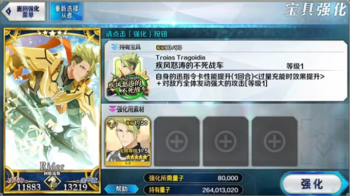在强化系统里,玩家能够对自己持有的从者与礼装开展全方位的强化操作,具体涵盖从者等级提升、灵基再临、技能升级、宝具强化,还有礼装的等级强化和突破。