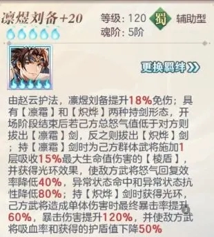 凛煜刘备作为蜀队的核心辅助,能从多方面为队伍提供助力:既能对敌方进行怒气控制,又能保障己方的怒气循环,还具备棱盾锁血、怒抗异抗异命、暴击护盾等诸多属性加成,优势多到数不清,这就是版本第一辅助位的实力体现。