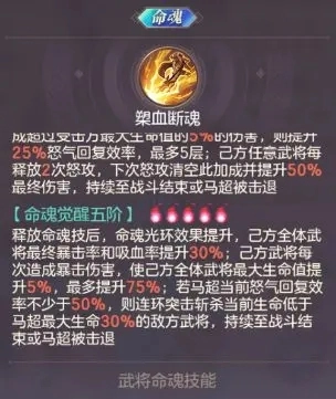 马超:蜀队最后一个位置的选择,如果你的马超已经达到5火红豆的练度,那就不用犹豫,直接上阵准没错。5豆马超解锁的斩杀机制,和苍澜关羽旋涡带来的退场效果相配合,能形成双重的有效斩杀,这对喜欢一波灭队的玩家来说,绝对是让人眼前一亮的组合。不过要注意的是,马超的核心强度都集中在5豆阶段,有没有养到5豆,在实战表现上会有天壤之别。