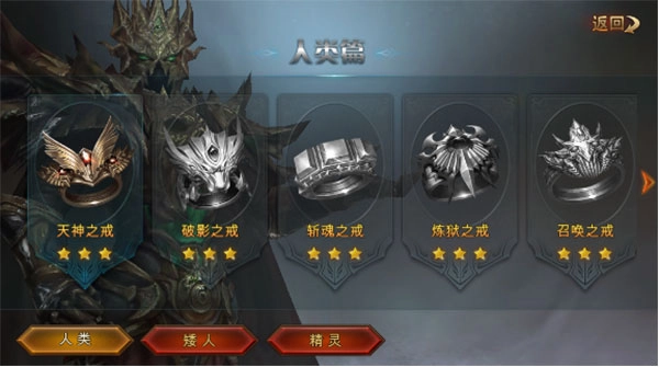 魔戒系统是游戏的核心系统,包含人类之戒、矮人之戒与精灵之戒三类。集齐人类之戒能解锁各类职业技能(如爆发、追杀、保命、状态、刷怪技能等)及新章节地图;收集矮人之戒可获取特殊技能,像攻击附带属性、提升治愈能力、隐身等;精灵之戒则能赋予玩家神秘能力,例如杀怪经验提升。这些戒指构成了玩家的重要目标脉络,在收集过程中,玩家能不断获得能力强化与成就感。
