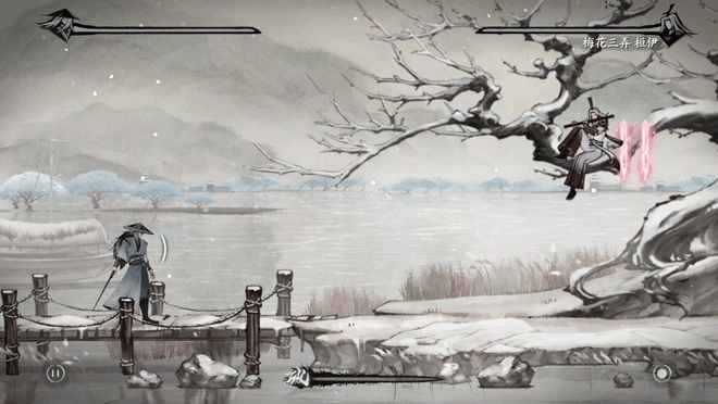 背景采用国风水墨风格,配乐大多是经改编的古琴曲,通过调整优化,使其更贴合武侠动作打斗的节奏与氛围。