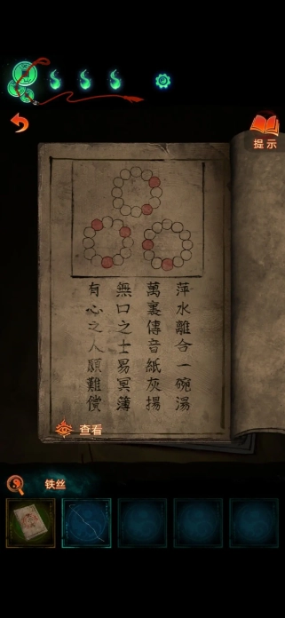 进入大门后,找到正对面的雕像,用空白冥籍与之互动完成小游戏;之后在空白冥籍上使用苦味原料,再依据书中的线索转动桌上的手串,即可获得经文。