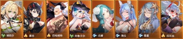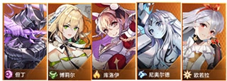 后排:阿鲁贝尔、尤娜、海拉(若没有尤娜,可替换为霜星;海拉则可以换成拉比丝)