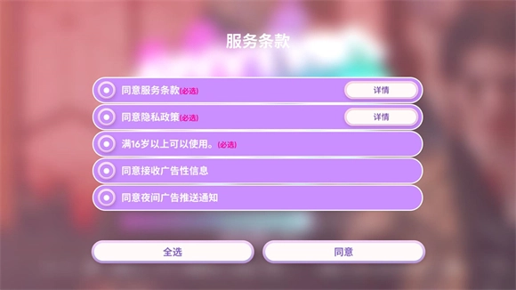 选择游客登录后,勾选全选同意条款,接着观看一段开场动画,就能正式进入游戏了。
