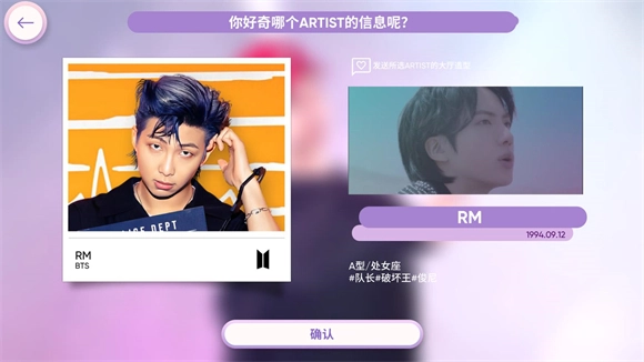 选好之后,会让你从乐团组合里挑选一位想一起玩的明星,选定后点击确认就可以了。
