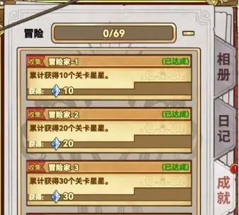 小屋→回忆→成果→(冒险、养成、收集、竞技场、账号、彩蛋)