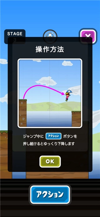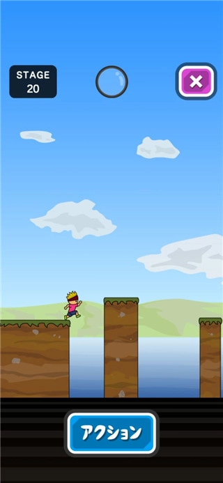3、轻点行动按钮进行跳跃,沿途收集道具并运用它们的特殊能力。在行动时务必留意,千万不要掉入水中,全力以赴抵达终点!