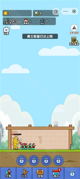 小小生存队2.0.0版本是一款人气颇高的爬塔小游戏,每一层都设有不同的挑战与未知的敌人。玩家需招募各类士兵加入队伍,借助合理搭配增强战队实力。随着关卡推进,难度会逐步提升,十分考验玩家的策略布局能力。游戏操作简单,采用点击式设计,感兴趣的小伙伴不妨一试。