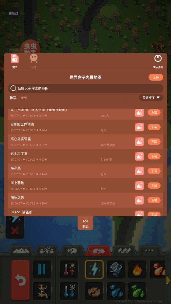世界盒子的汉化版本,是经过虫虫助手精心汉化的,还额外添加了大量地图,只需一键就能直接使用!在这个游戏里,玩家会成为世界的造物主,能够自由地打造专属于自己的世界,你可以引导世界朝着你期望的方向发展,不管是充满仙侠色彩的世界、存在神魔的世界,还是现代化的世界,各种各样的风格都由你说了算!除此之外,你还可以自由地掌控各种天灾人祸,自然的变迁也完全在你的掌控之中,说不定一场突如其来的灾难就能让一个文明走向毁灭!