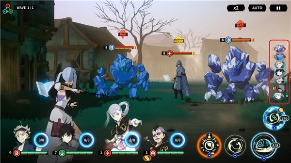 战斗将依照「行动顺序」展开,右侧的「行动条」可用于查看回合顺序。