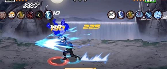 二技能复制忍者:开启后普攻将替换为技能,初始状态为雷切;普攻第1到2段切换为土流壁,第3到4段变为水龙弹,第5到6段则是火风,且火风附带吸附效果。