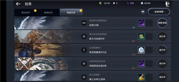挑战任务:俗称成就解锁任务,是休闲党玩家的福音。