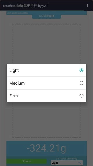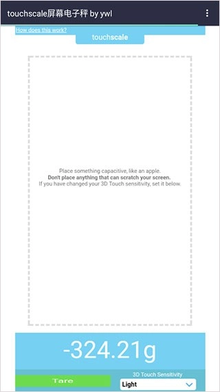 touchscale,TouchScale属于生活服务类软件,它的核心功能是把手机屏幕变成一个简易电子秤,用来对小型物品进行粗略称重。这款应用借助调用手机的压感屏幕技术,能够感应放置在屏幕上的轻量物体的重力,并在应用里显示对应的重量读数。