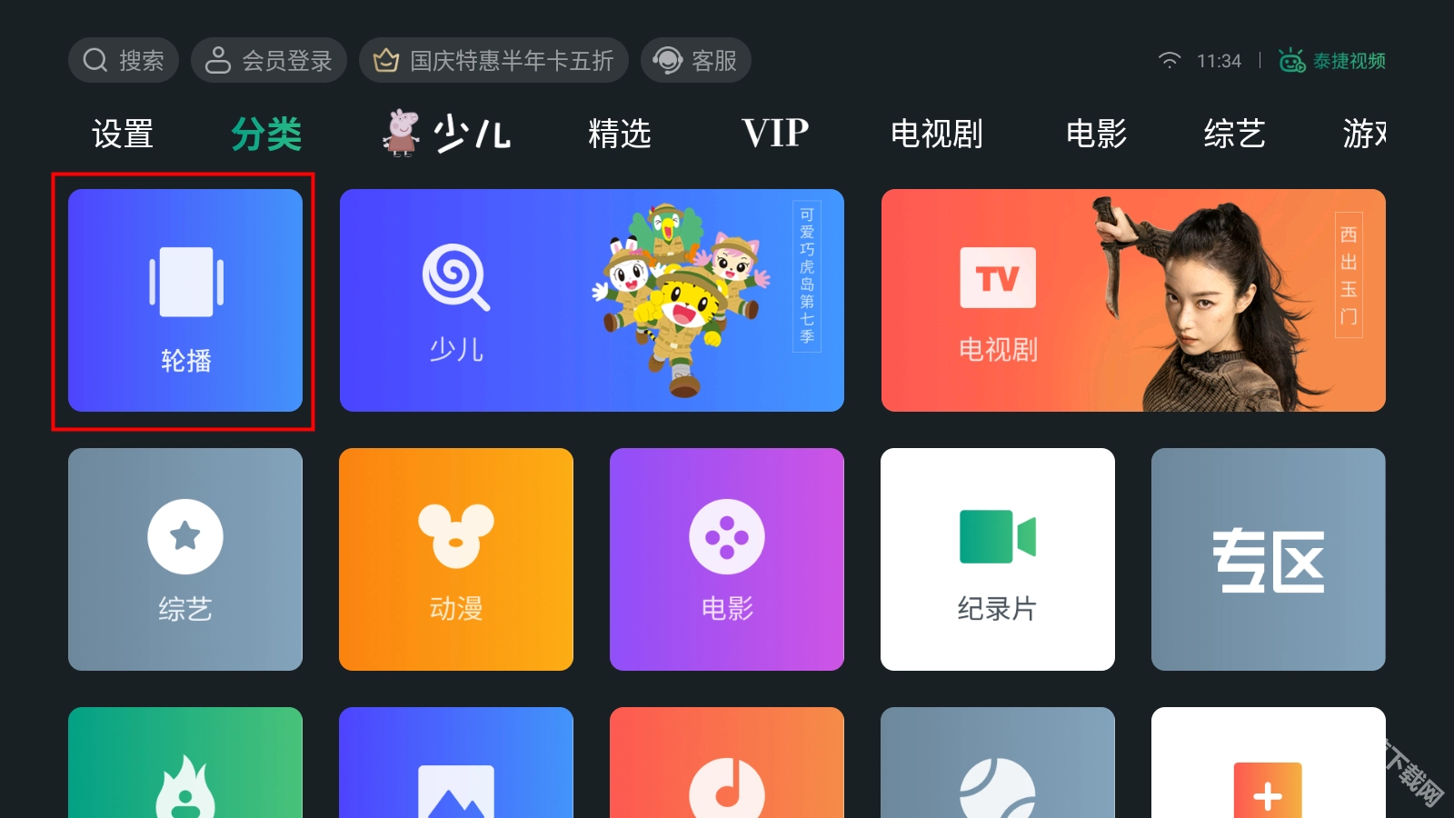 打开泰捷视频tv版,点击“轮播”可以观看视频;