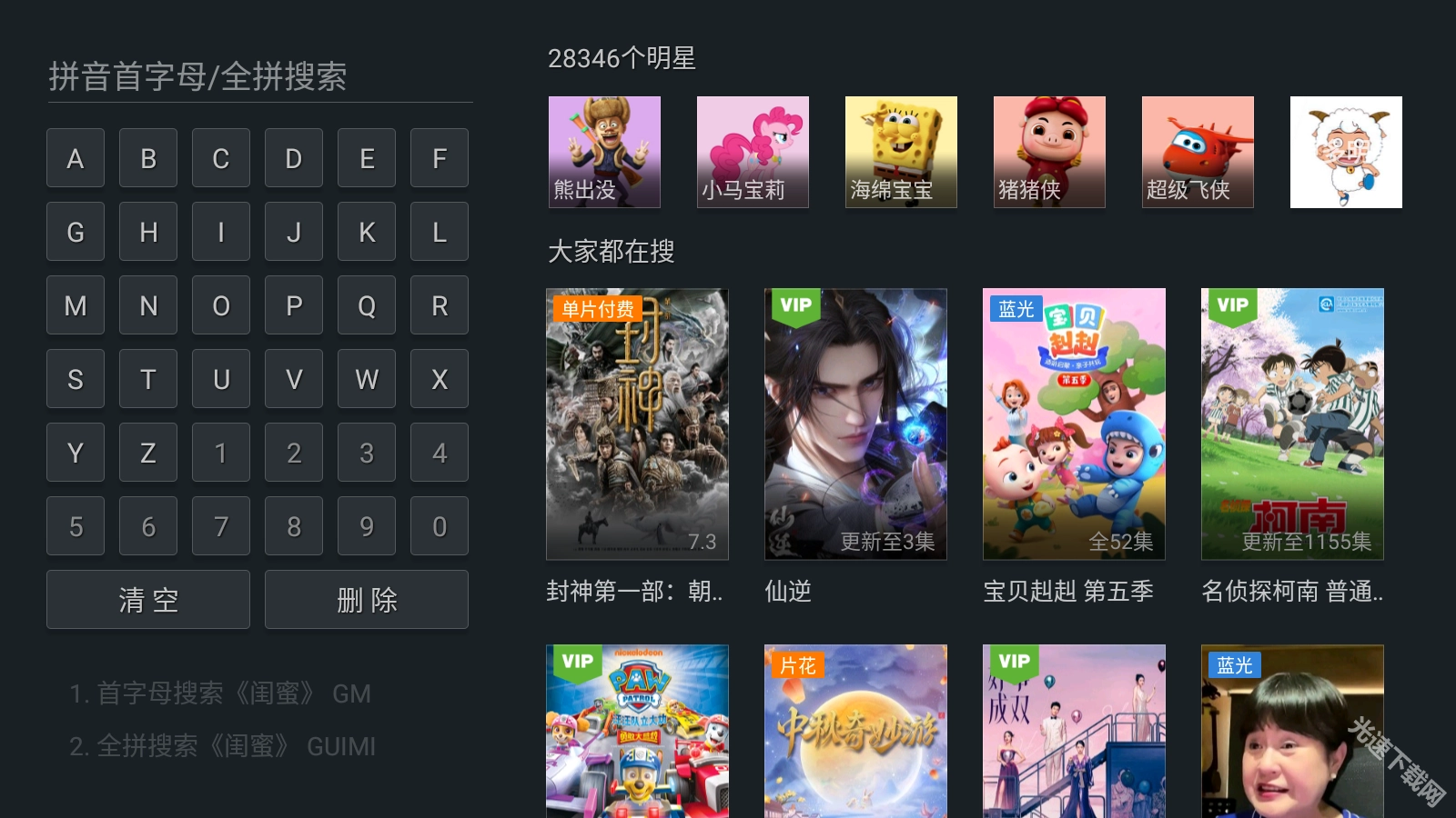 涵盖各大视频平台的电影、电视、电视剧、综艺等内容。拥有8000部电视剧、17000多部电影,还有极为丰富的动漫、综艺、搜狐片区等视频资源频道。