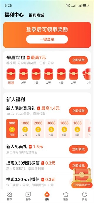 打开就能看到推荐的短剧,看短剧还可以领红包;