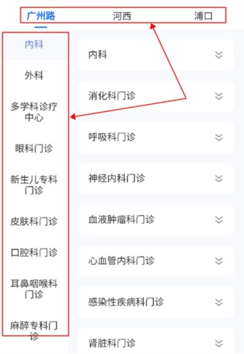 之后就可以选择广州路、河西、浦口这三个地区的科室挂号,建议根据距离远近选择,离哪里近就选哪里。