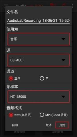 打开Audiolab中文版应用,在首页选择“录制音频”。