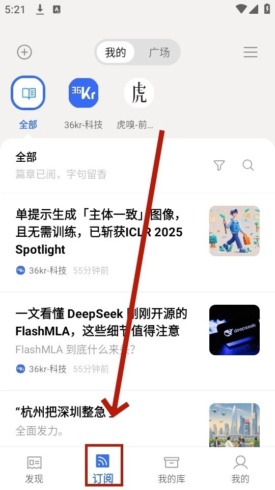 订阅界面有刚刚订阅的频道;