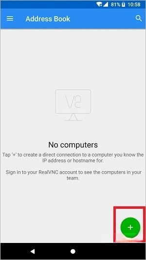 打开安卓版本的vnc viewer应用,接着点击界面右下角的“+”按钮。