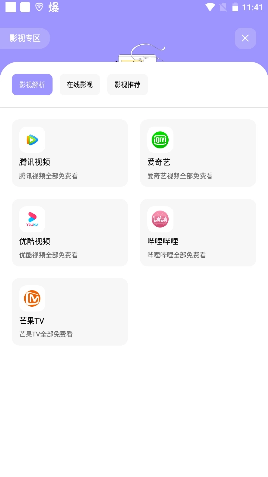 点击“影视专区”可以免费查看各种影视。
