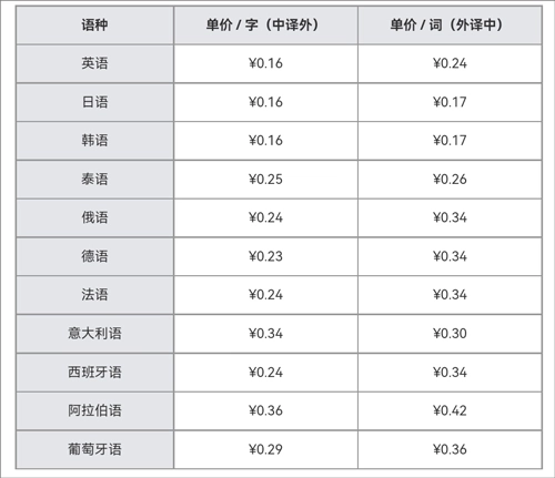快速图文翻译的计费方式为:翻译字数乘以对应语种的字数单价。