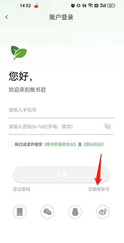在账号登录页面中点击“注册新账号”选项。