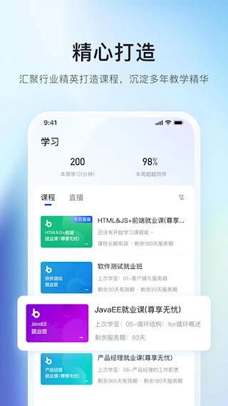 平台拥有系统化的视频课程资源库,涵盖Java、Python、前端、大数据等热门技术领域。课程依据难度进行等级划分,配套有相应的实战项目素材,同时支持在线观看、离线缓存以及学习进度的追踪与管理功能。