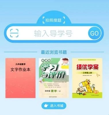 打开导学号后,我们首先会进入“导学号”板块,该板块包含“搜题”“进入书城”和“导学活动”三个子模块。