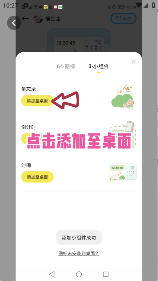 如果图标添加失败,点击图标未安装到桌面