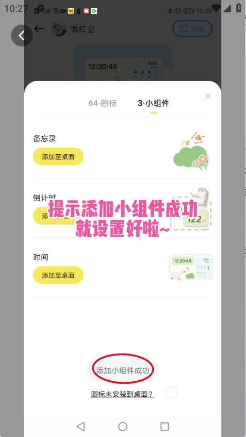提示添加小组件成功就设置好啦