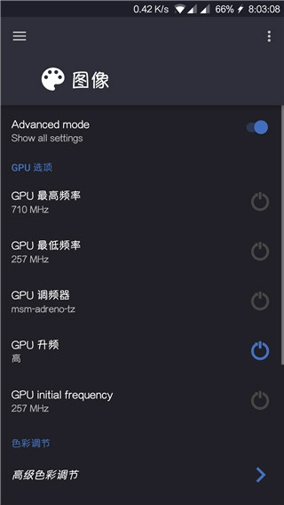 还有我们的图像部分,图像性能的核心就是GPU!咱们软件的GPU性能已经相当强大,完全不需要再去调节频率,只要把GPU的升频数值调高就可以了。