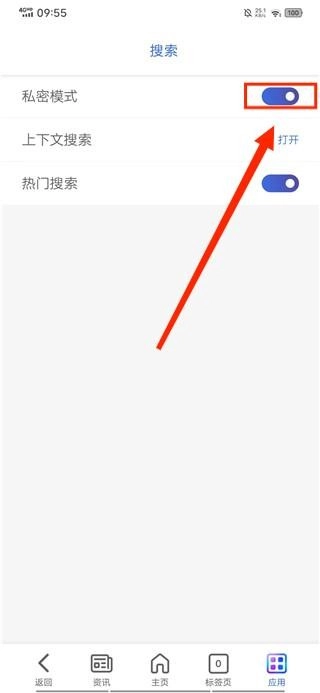 最后将【私密模式】的功能打开即可。