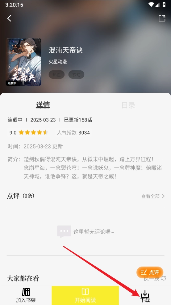 进入漫画详情页,点击右下角的""按钮。