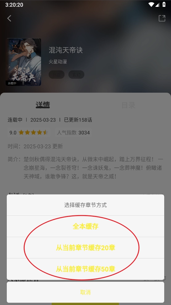 然后选择缓存章节方式并点击进入。