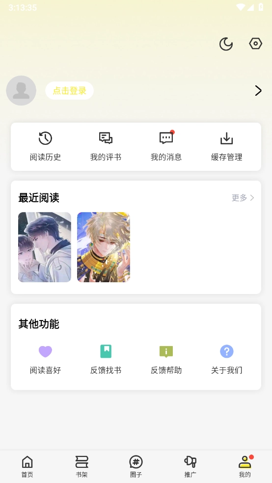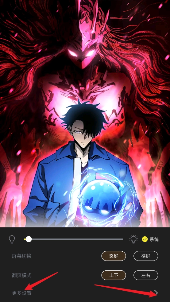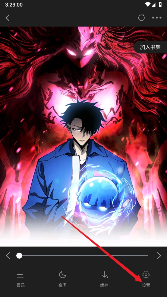 进入漫画页面点击中间呼出菜单,点击"设置"。