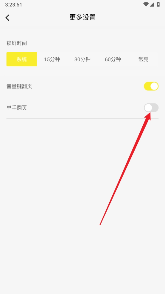 最后开启单手翻页的开关即可。