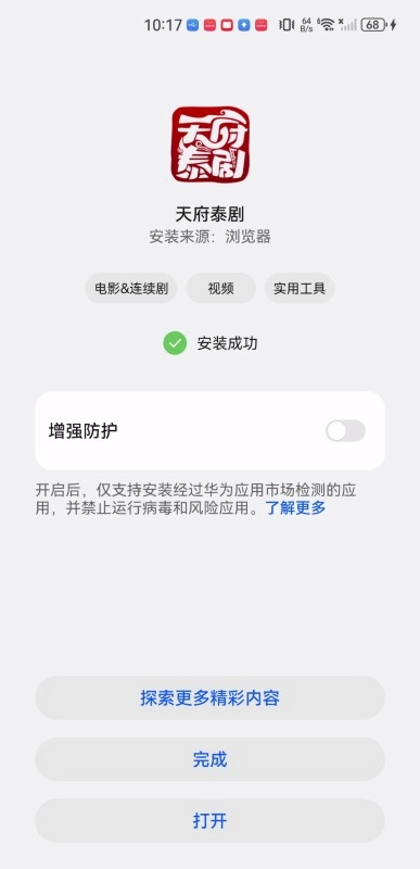 最后,屏幕上会出现一个绿色的对勾,这就表示“安装完成”了。此时点击“打开”按钮,就能开始体验了。