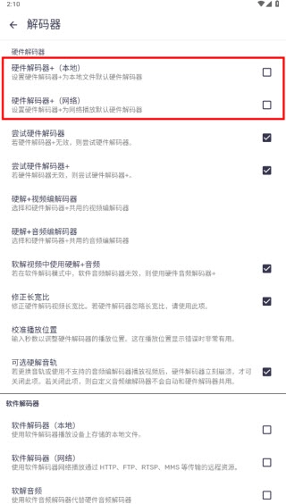 勾选硬件解码器以及本地和网络选项,这样就完成了硬件解码的开启操作。